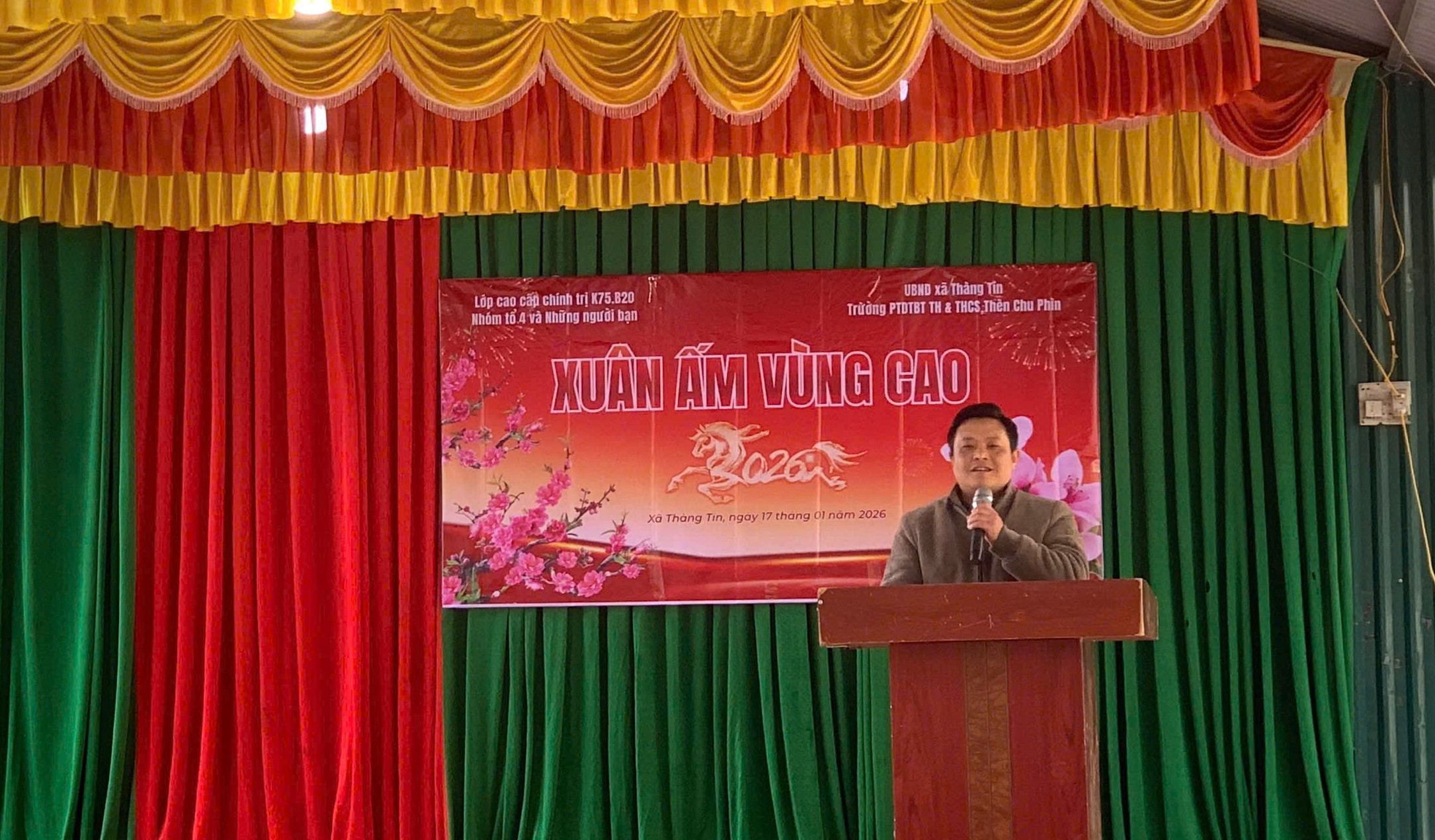 Tại chương trình, Công ty Cổ phần Tập đoàn Masan đã trao tặng 200 suất quà nhu yếu phẩm cho học sinh và các hộ gia đình có hoàn cảnh đặc biệt khó khăn trên địa bàn xã. Nhóm tổ 4, lớp Cao cấp lý luận chính trị K75.B20 trao tặng 03 bình nước nóng lạnh phục vụ sinh hoạt tại trường và 407 áo ấm cho 407 học sinh của nhà trường.
