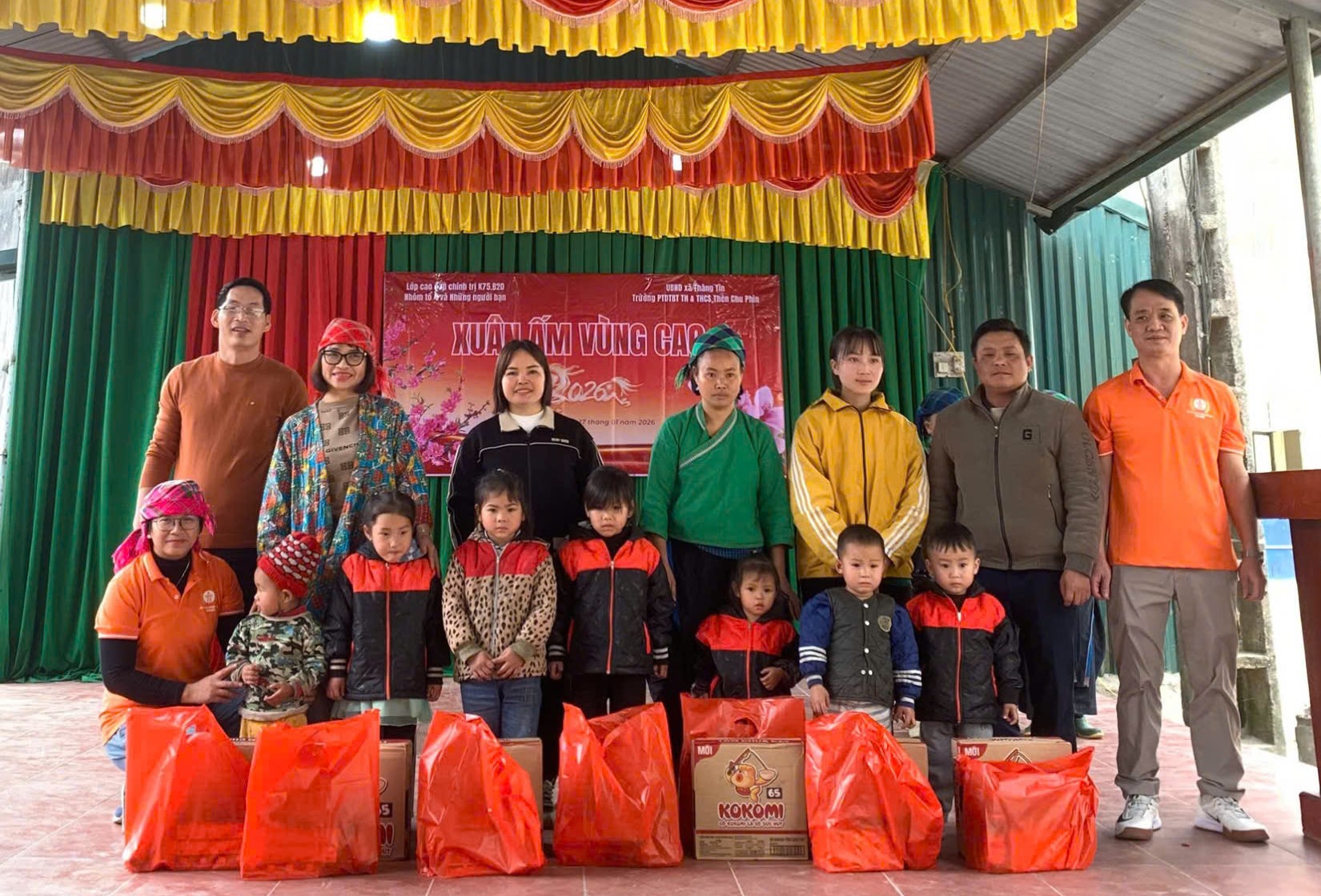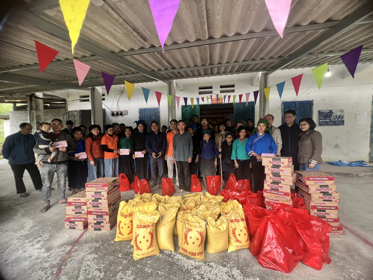 Cùng ngày, đoàn thiện nguyện tiếp tục đến thôn Đông Rìu, xã Thàng Tín trao 26 suất quà cho 26 hộ gia đình có hoàn cảnh đặc biệt khó khăn. Chương trình được tổ chức tại hội trường thôn trong không khí ấm áp, sẻ chia.