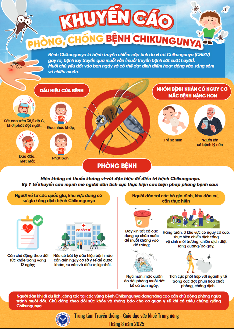 Tại buổi truyền thông, các đại biểu và Nhân dân đã được cung cấp nhiều nội dung thiết thực về công tác phòng, chống các bệnh truyền nhiễm thường gặp và bệnh mới nổi. Trong đó, tập trung vào các bệnh như Chikungunya, Nipah, sởi – Rubella, sốt xuất huyết và bệnh dại; bao gồm các nội dung về đặc điểm bệnh, đường lây truyền, dấu hiệu nhận biết, biến chứng nguy hiểm và các biện pháp phòng tránh hiệu quả.