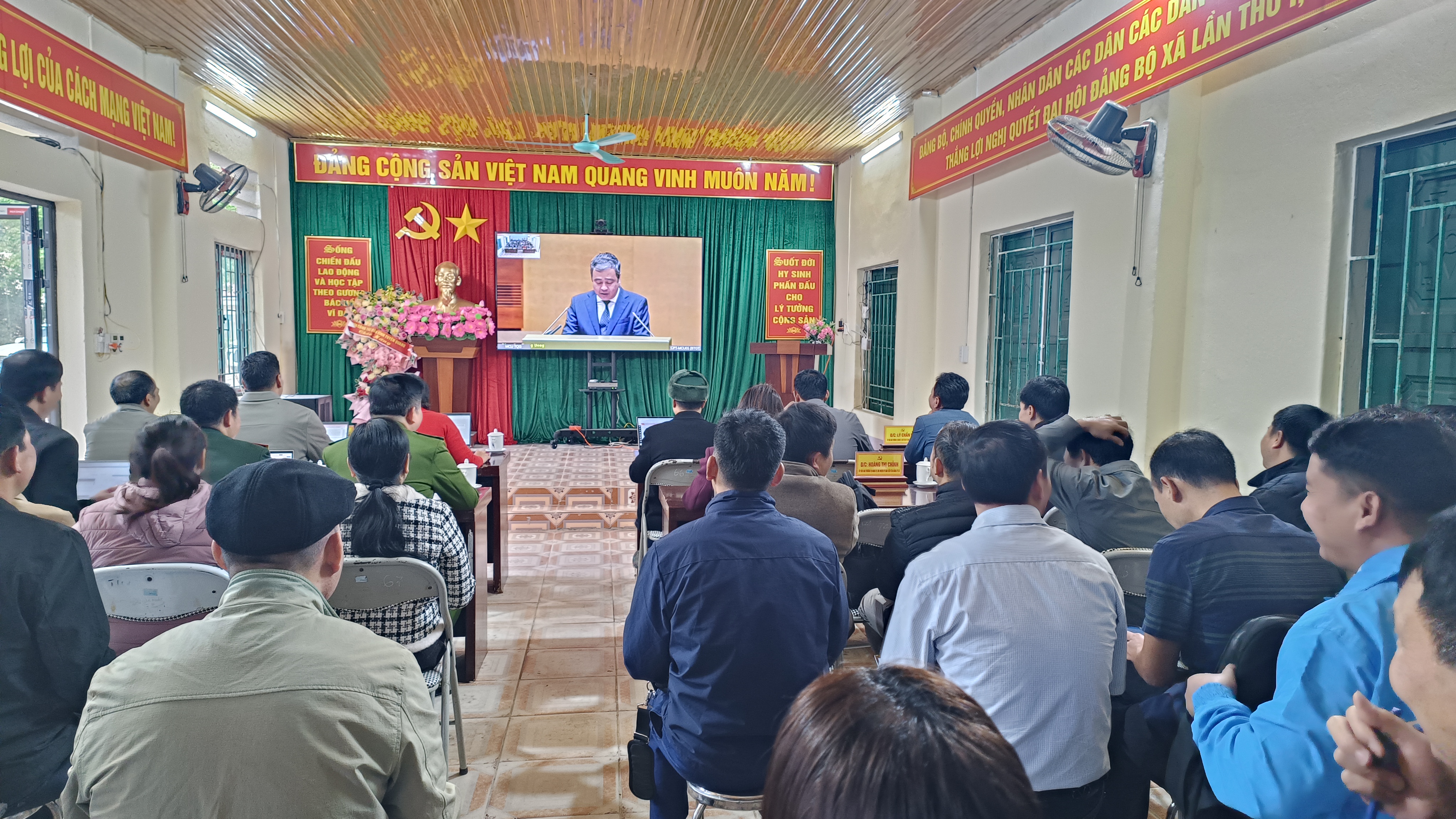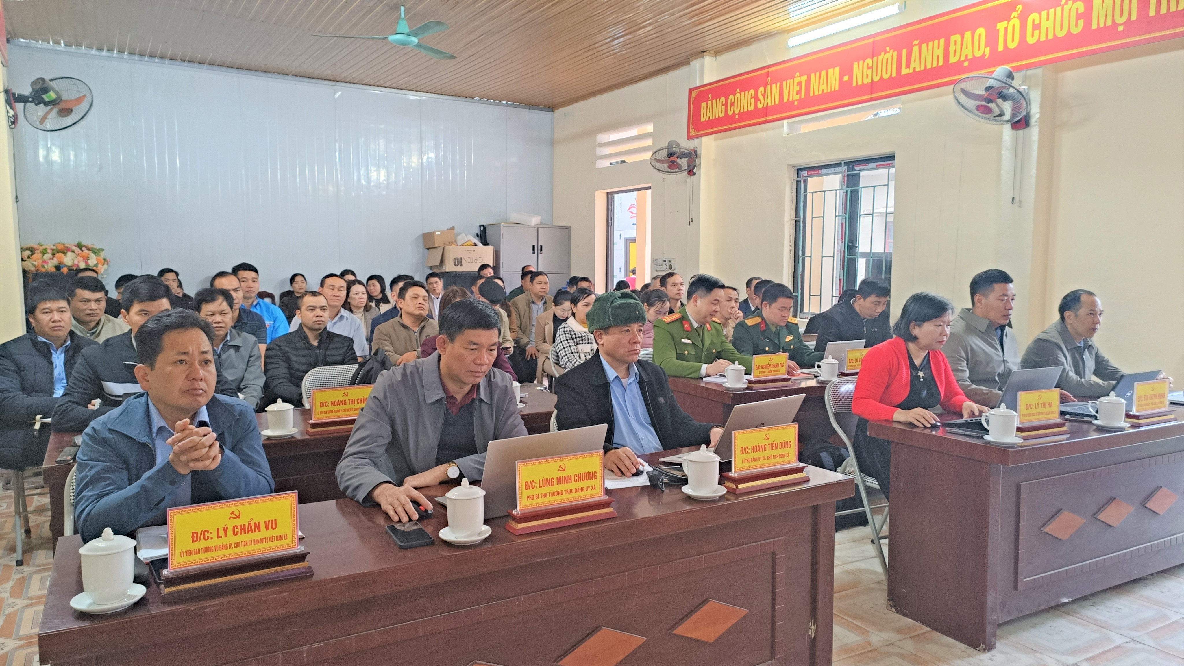 Dự hội nghị tại điểm cầu xã Thàng Tín có các đồng chí Thường trực Đảng ủy; Thường trực HĐND; lãnh đạo UBND xã; các đồng chí Ủy viên Ban Chấp hành Đảng bộ; Ủy viên Ủy ban Kiểm tra Đảng ủy xã; lãnh đạo Ủy ban MTTQ và các tổ chức chính trị – xã hội; lãnh đạo các phòng, ban, đơn vị sự nghiệp cấp xã; đại diện lãnh đạo các đơn vị lực lượng vũ trang đang công tác, đóng quân trên địa bàn; bí thư các chi, đảng bộ trực thuộc; trưởng thôn; hiệu trưởng, phó hiệu trưởng các trường THCS, tiểu học, mầm non; cùng chuyên viên Phòng Văn hóa – Xã hội cấp xã.