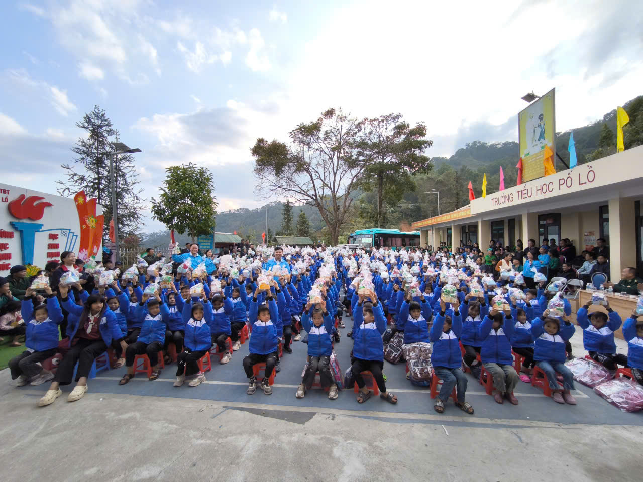 Đoàn thiện nguyện do ông Vũ Hữu – Tổng Giám đốc Công ty làm Trưởng đoàn. Tham dự chương trình có đại diện Phòng Văn hóa xã, Đồn Biên phòng Thàng Tín, Ban Giám hiệu Trường Tiểu học Pố Lồ, cùng toàn thể cán bộ, giáo viên, các em học sinh và đông đảo phụ huynh nhà trường.