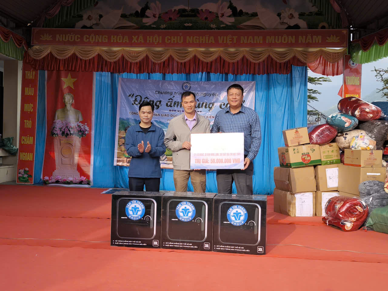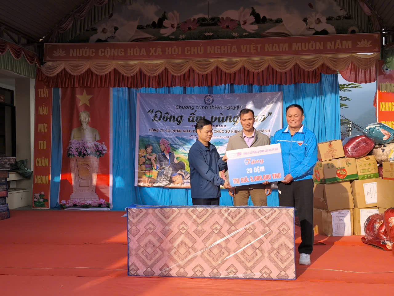 Tại chương trình, Công ty Cổ phần Giáo dục và Tổ chức sự kiện Tâm Tín Thành đã trao tặng nhiều phần quà thiết thực cho nhà trường và các em học sinh, gồm: 03 bình nóng lạnh, 20 chiếc đệm, 18 chăn lông cừu, 40 cặp sách, 312 áo khoác đồng phục, 02 suất quà dành cho học sinh khuyết tật và 312 phần bánh kẹo, với tổng trị giá 70 triệu đồng.