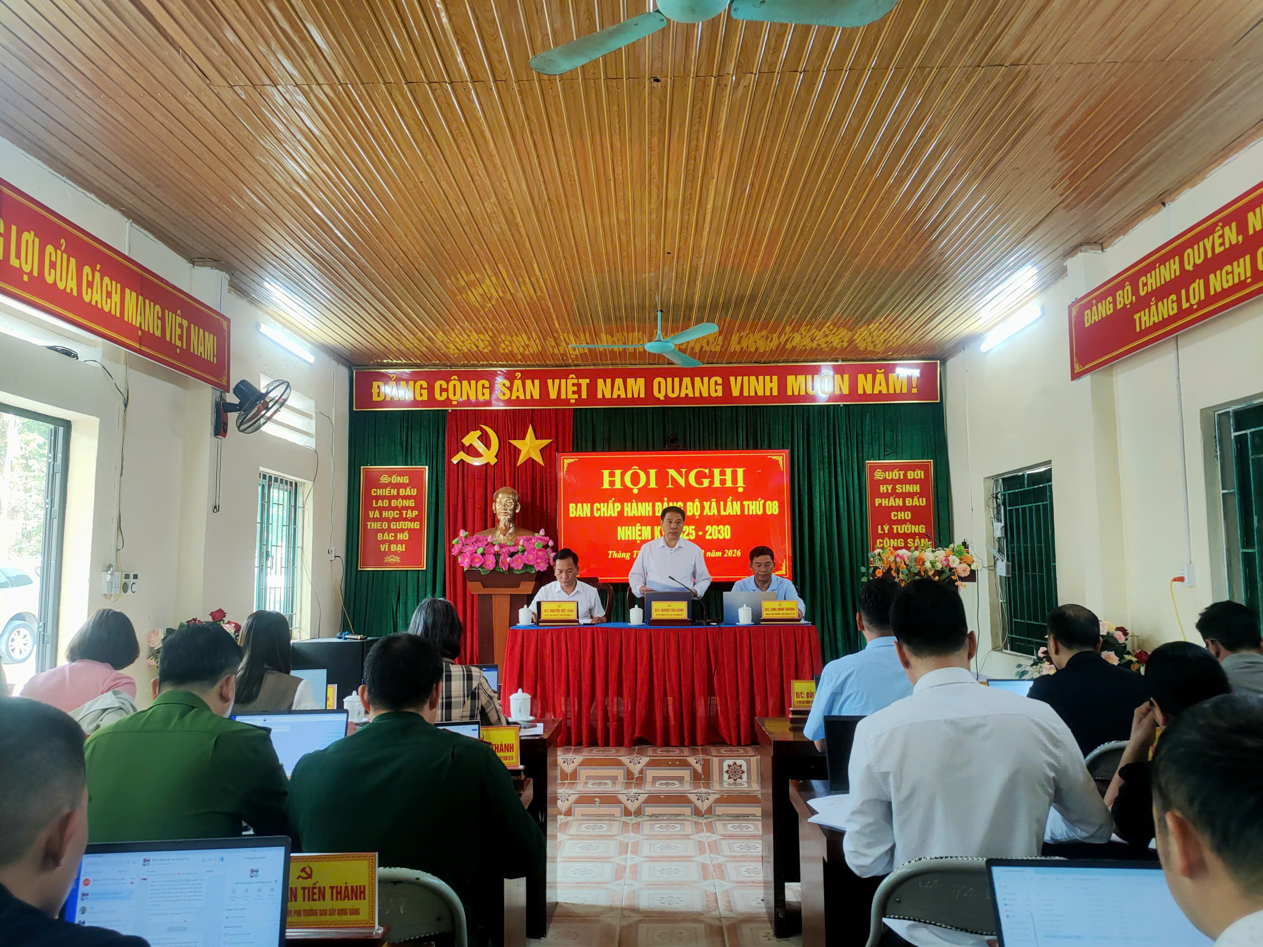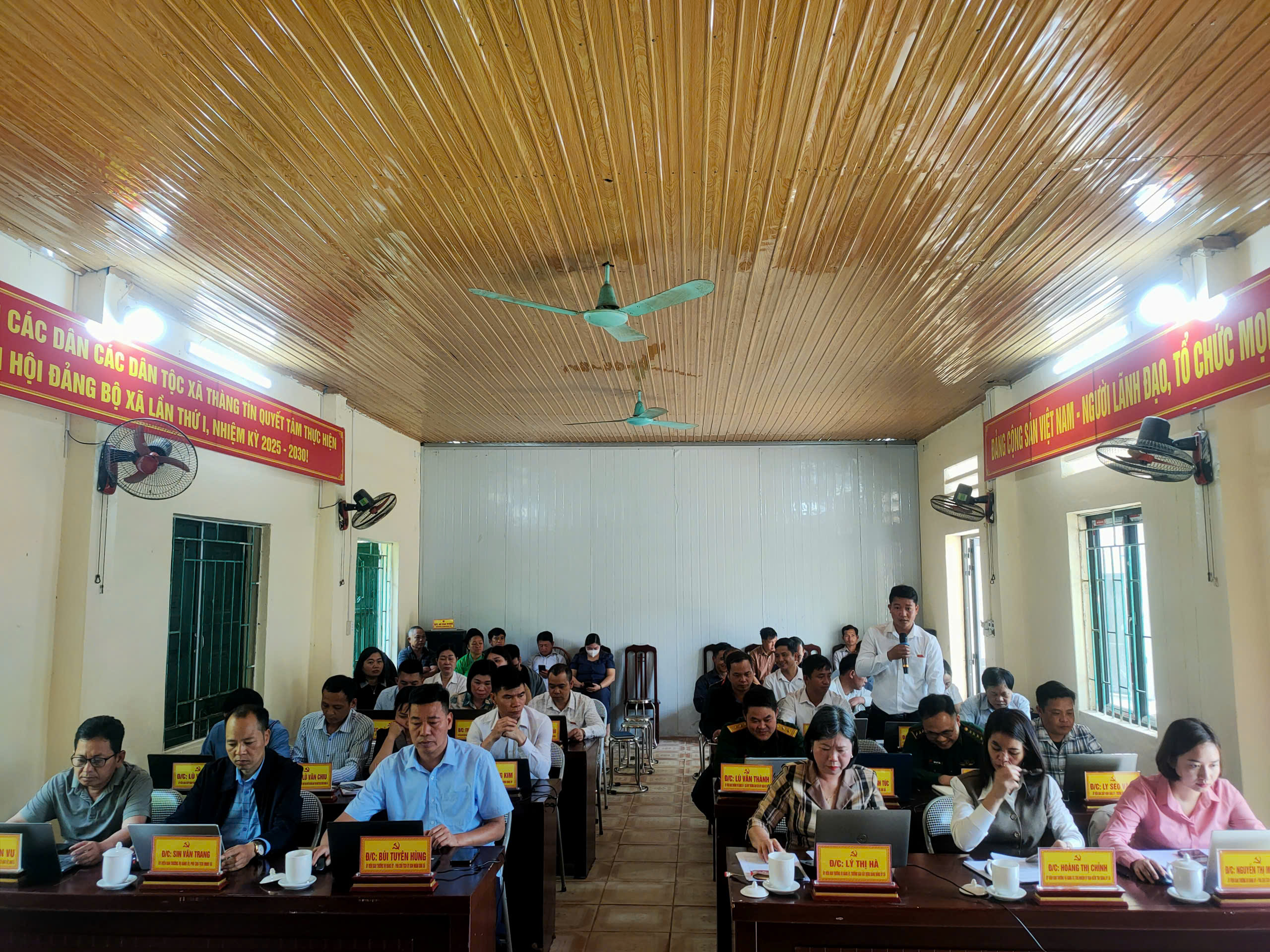 Hội nghị do các đồng chí Hoàng Tiến Dũng - Bí thư Đảng ủy xã, đồng chí Lùng Minh Chương – Phó Bí thư Thường trực Đảng ủy xã,đồng chí Nguyễn Việt Tuân – phó Bí Thư Đảng ủy, Chủ tịch Ủy ban Nhân dân xã chủ trì, với sự tham dự của các đồng chí Thường trực HĐND, UBND; Ủy ban MTTQ Việt Nam xã; Các đồng chí Ủy viên Ban Chấp hành Đảng bộ xã; Lãnh đạo Ban Xây dựng Đảng; Lãnh đạo, Ủy viên Ủy ban Kiểm tra Đảng ủy; Lãnh đạo các tổ chức chính trị - xã hội; Lãnh đạo Đồn Biên phòng Thàng Tín; Lãnh đạo Đội SX&XDCSCT số 5 (Đoàn KTQP 313); Lãnh đạo các cơ quan: Công an xã, Quân sự xã, Phòng Kinh tế, Phòng Văn hóa - Xã hội, Văn phòng HĐND&UBND xã, Trung tâm phục vụ hành chính công, Trung tâm dịch vụ công, Văn phòng Đảng ủy, Trạm Y tế; Ban giám hiệu Trường học,Bí thư các Chi bộ trực thuộc Đảng bộ xã.