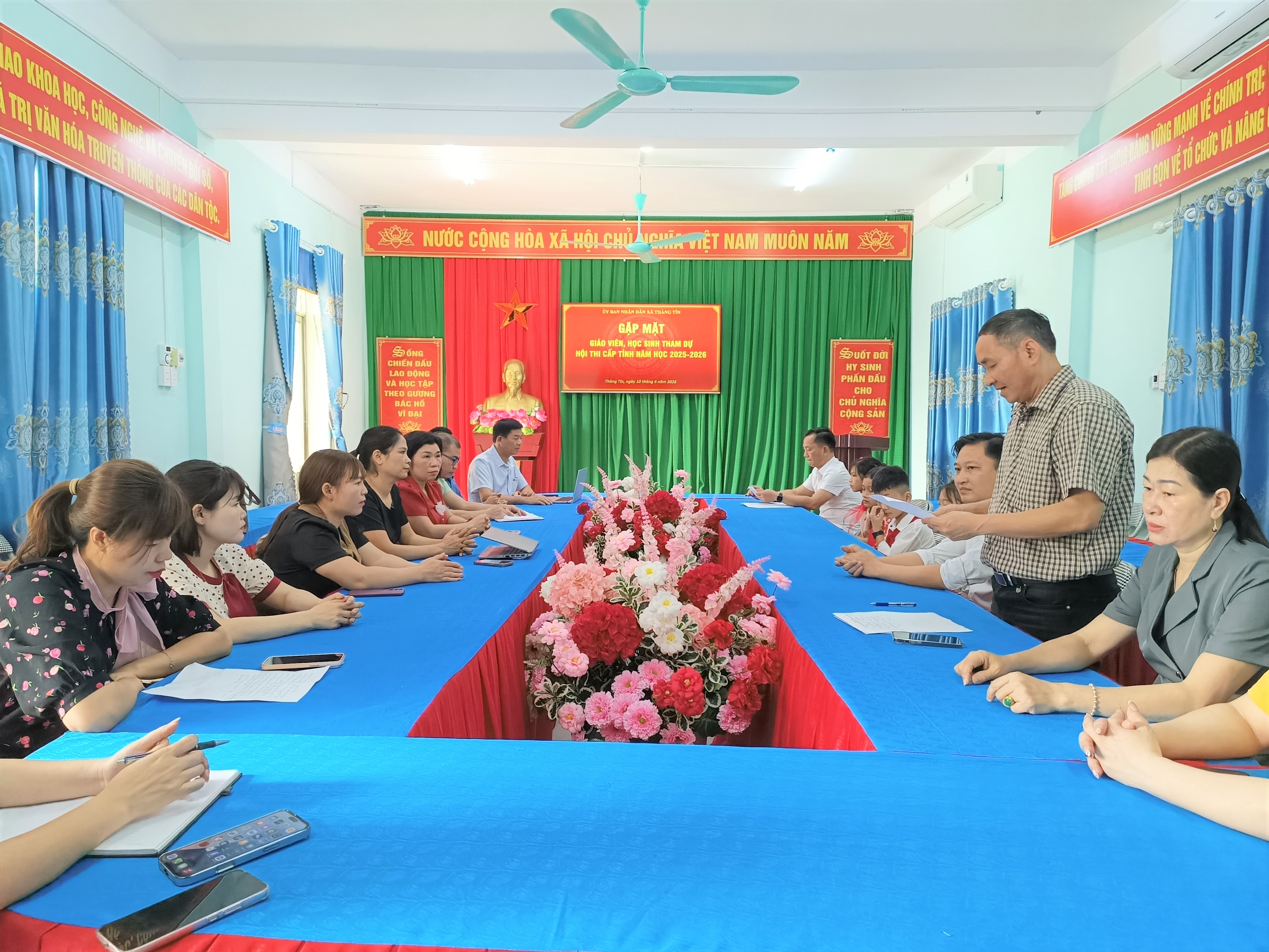 Dự buổi gặp mặt có đồng chí Lùng Minh Chương – Phó Bí thư Thường trực Đảng ủy xã; đồng chí Nguyễn Việt Tuân – Phó Bí thư Đảng ủy, Chủ tịch UBND xã; lãnh đạo, chuyên viên phụ trách lĩnh vực Văn hóa – Xã hội; đại diện Trung tâm Dịch vụ công xã; Ban Giám hiệu các trường mầm non, tiểu học, TH&THCS có giáo viên, học sinh tham gia dự thi cấp tỉnh; cùng các giáo viên mầm non và học sinh tiểu học dự thi.