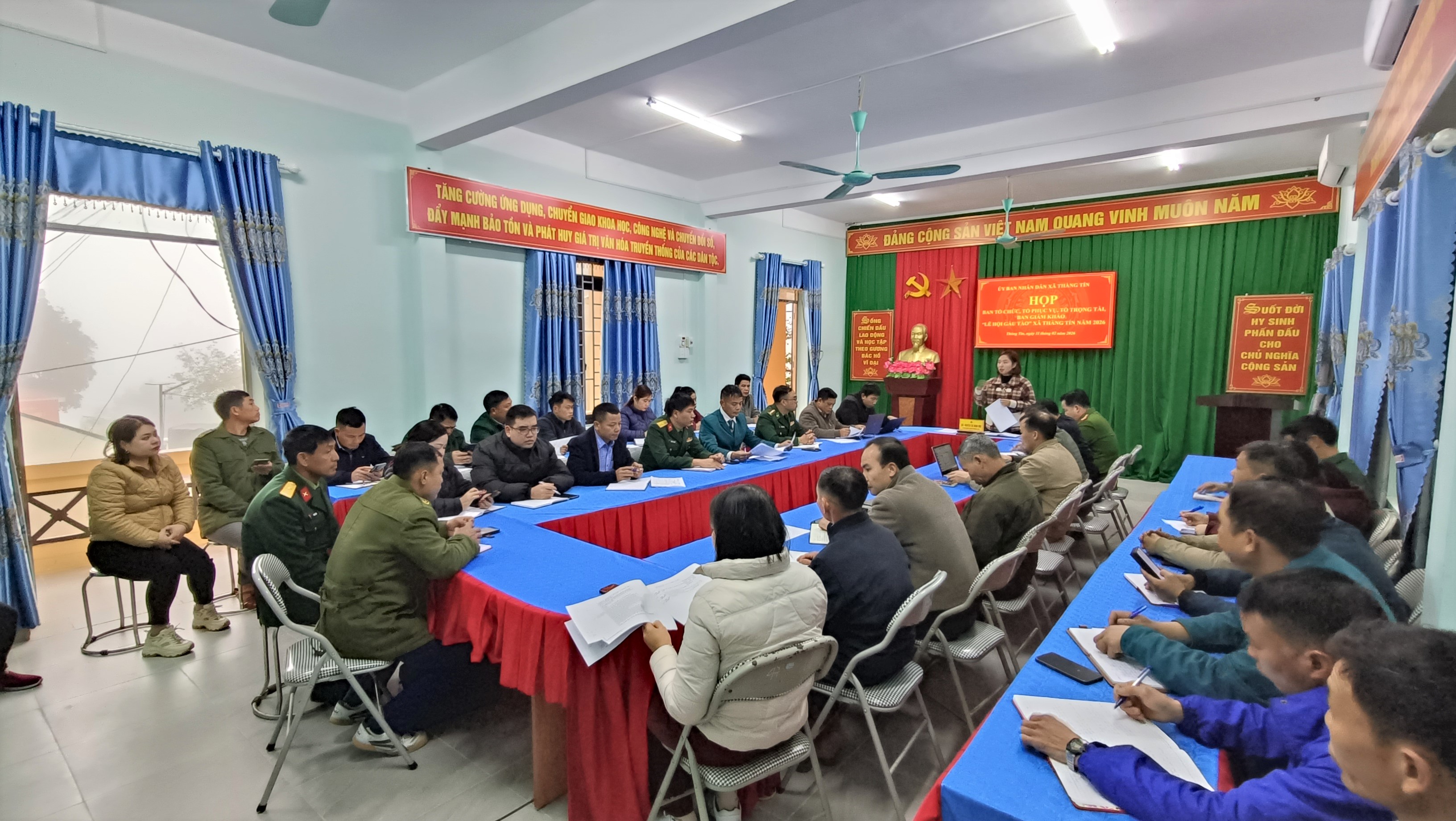 Dự và chủ trì cuộc họp có đồng chí Nguyễn Thị Minh Mùi – Phó Chủ tịch UBND xã, Trưởng Ban tổ chức Lễ hội; đồng chí Lý Chẩn Vu – Chủ tịch Ủy ban MTTQ Việt Nam xã, đồng chí Ly Seo Vàng – Trưởng phòng Văn hóa – Xã hội xã, đồng Phó Trưởng Ban tổ chức. Tham dự cuộc họp còn có các thành viên Ban tổ chức, Tổ phục vụ, Tổ trọng tài, Ban giám khảo; lãnh đạo Đồn Biên phòng Thàng Tín; lãnh đạo Đội Sản xuất và Xây dựng cơ sở chính trị số 5 – Đoàn Kinh tế quốc phòng 313; lãnh đạo Công an xã, Ban Chỉ huy Quân sự xã; lãnh đạo các phòng, ban chuyên môn; lãnh đạo Trạm Y tế xã; lãnh đạo 7 trường học; trưởng 23/23 thôn trên địa bàn xã.