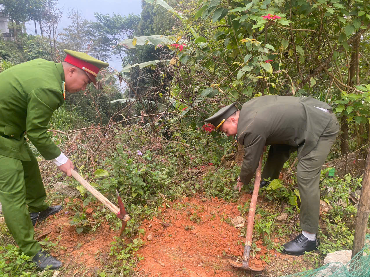 Ngay sau lễ phát động, các đại biểu cùng Nhân dân đã trực tiếp tham gia trồng cây tại khu đất trống trong khuôn viên UBND xã, tạo không khí phấn khởi, sôi nổi.